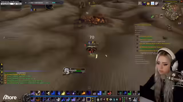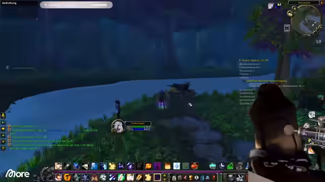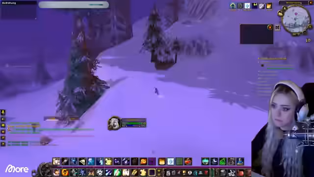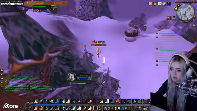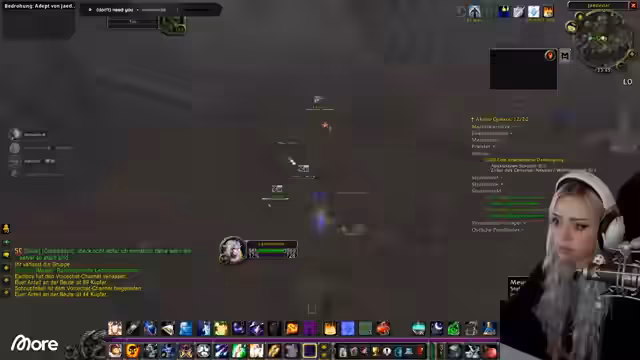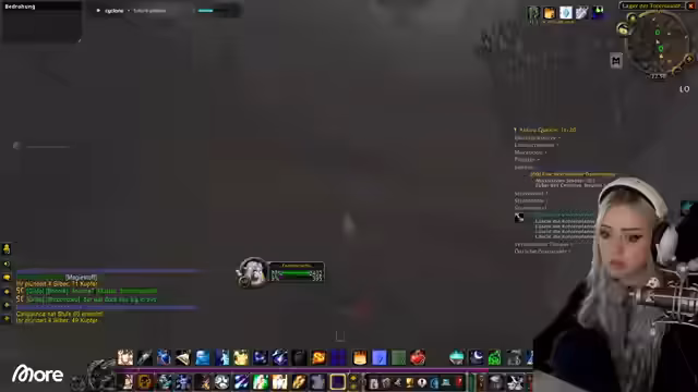 02:22:30Der Streamer kehrt nach Winterquell zurück, um eine Quest abzugeben und überlegt, ob er zusätzliche Bären für den Ruf-Farm tötet, um 4000 XP zu erhalten. Während des Gesprächs erwähnt er die bereits gesammelten 40 Amulette. Nach einer kurzen Erkundung bemerkt er spawnende und angreifende Marauder, was ihm Sorgen bereitet. Er überlegt, ob er einer anderen Gruppe mit einem Magier in der Nähe für bessere XP folgen soll, entscheidet sich aber vorerst dafür, weiter zu questen und andere Mobs wie die Twilight-Anhänger zu farmen, da diese allein über 10.000 XP pro Mob geben.
