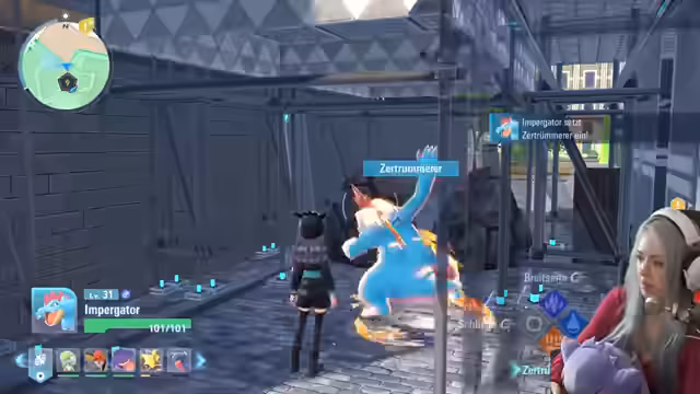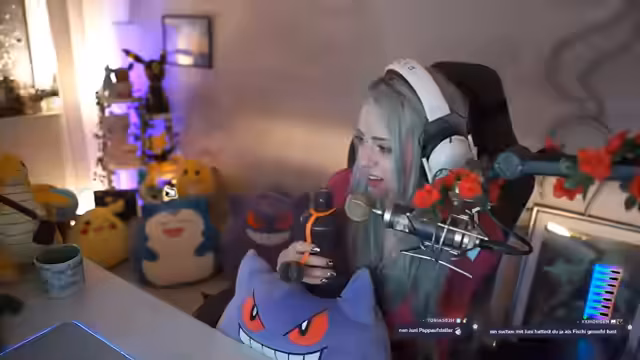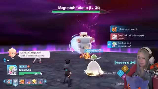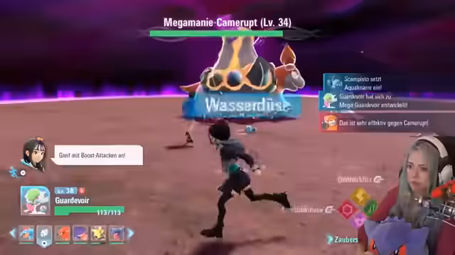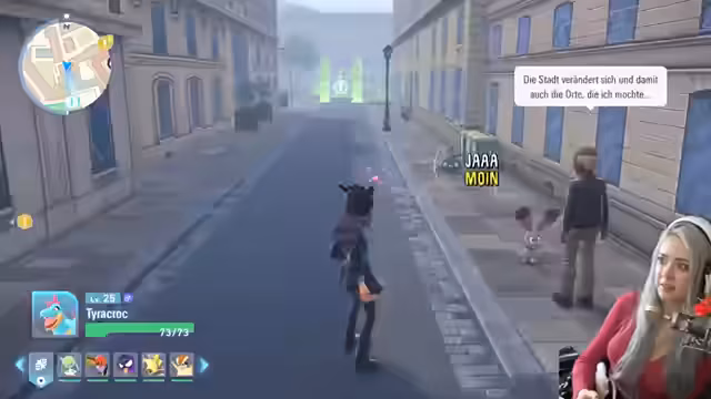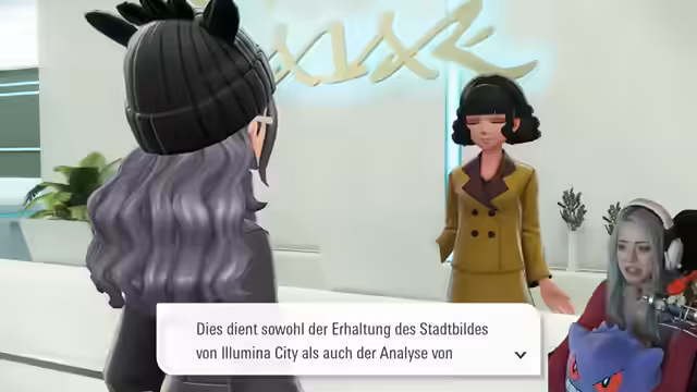 08:23:00Die Streamerin beschäftigt sich mit der Besänftigung von Mega-Manie-Pokémon in der Stadt Illumina. Dabei erwähnt sie das Smart Rotom mit seinem Landungsmodus und die Notwendigkeit, bestimmte Pokémon wie Kamerub zu beruhigen. Sie erinnert sich an eine ähnliche Situation bei einem früheren Konzert. Anschließend wechselt sie das Thema zu sammelbaren Steinen und bemerkt, dass sie noch Pagata nicht alles gegeben hat.