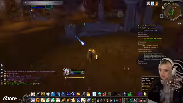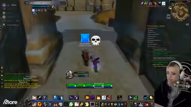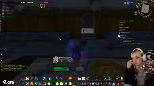 01:05:10Der Stream schwenkt zurück zum Gameplay in World of Warcraft. Der Fokus liegt darauf, das Level von 51 auf 52 zu steigern. Dies erfordert das Finden und Töten von Gegnern in den westlichen Pestländern, um XP zu sammeln. Parallel dazu wird der Frust über das fehlende Gegenstand 'Sekret des Untodes' für eine Quest geteilt, den man nur mit geringer Wahrscheinlichkeit droppen kann.