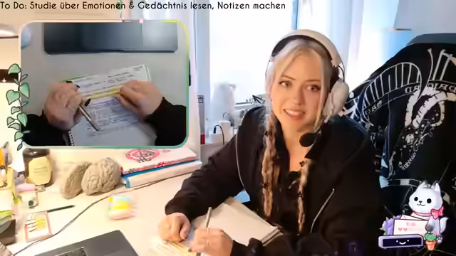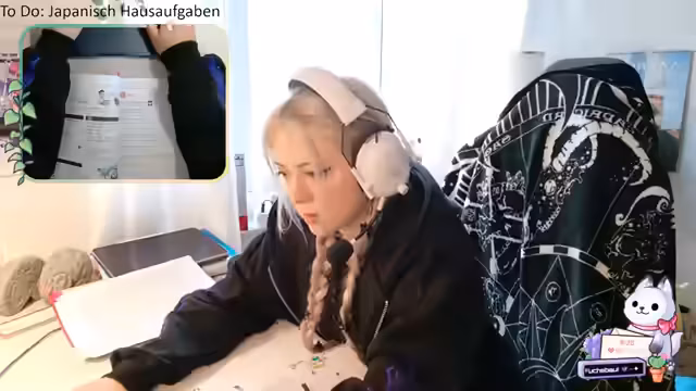 00:17:18Die Streamerin bereitet sich auf ihre Japanisch-Lektion vor, die sich auf Sympathikus und Parasympathikus konzentriert und das Üben von Katakana beinhaltet. Sie muss einen Text über ihre Wohnsituation im Online-Forum verfassen, wobei sie humorvoll feststellt, dass sie aufgrund ihres Cosplay-Raums viel zu beschreiben hätte, aber die japanischen Vokabeln fehlen. Ein Tastenkürzel zum Wiederherstellen geschlossener Tabs auf dem Mac wird von der Community geteilt und erfolgreich getestet. Der Wochen-Streamplan wird besprochen, inklusive eines League of Legends Streams mit Ceci am Donnerstag und flexiblen Nachmittags-Streams. Es wird über die Möglichkeit gesprochen, Borderlands DLC zu spielen oder andere Ideen umzusetzen. Der Twilight-Marathon wird reflektiert, wobei die Erinnerung an den zweiten und dritten Teil der Filme bereits verblasst ist.