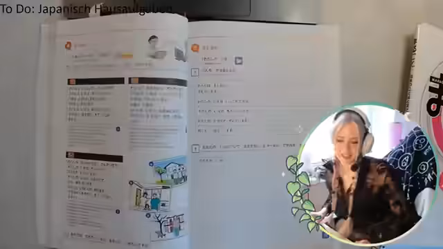 00:32:50Die Streamerin arbeitet an einer Aufgabe, bei der E-Mails mit Wohnungsbeschreibungen drei Bildern zugeordnet werden müssen. Sie analysiert die Beschreibungen, die Details wie Wohnort (Tokio, Osaka), Familienstand, Alter des Kindes und Haustiere enthalten, um die korrekten Zuordnungen vorzunehmen. Anschließend werden japanische Vokabeln für Einrichtungsgegenstände geübt, wie 'Teburu' (Tisch), 'Kappu' (Tasse), 'Tana' (Regal), 'Toke' (Wecker), 'Shashin' (Foto), 'Ningyo' (Puppe), 'Haku' (Box) und 'Hon' (Buch). Die Herkunft der Wörter wird anhand ihrer Schriftzeichen (Hiragana für japanische Wörter, Katakana für Lehnwörter) erklärt. Weitere Vokabeln für Räume und Orte im Haus wie 'Toire' (Toilette), 'Ofuro' (Badezimmer), 'Niwa' (Garten) und 'Genkan' (Eingangsbereich) werden behandelt. Es wird auch die Aufgabe besprochen, Wörter zu identifizieren, die sich von einer Gruppe unterscheiden, basierend auf Kategorien wie Gegenstände vs. Räume oder Innen- vs. Außenbereiche.