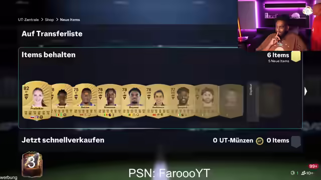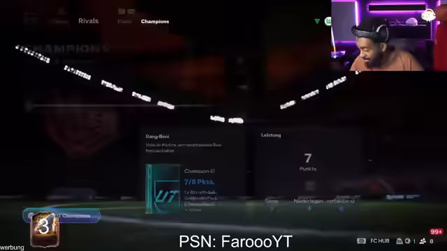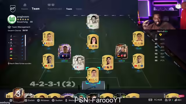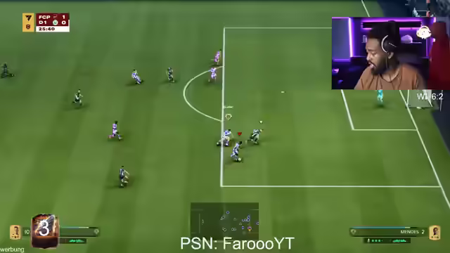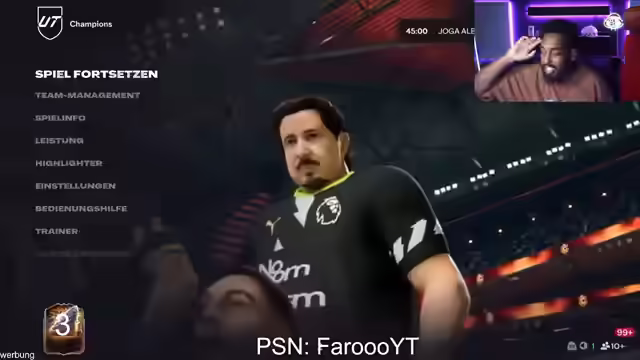 03:06:13Der Streamer wundert sich, woher er plötzlich First-Time-Dreieck-Pässe spielen kann, nachdem er die ganze WL seinen Controller nicht mal gerade halten konnte. Er erreicht Rang 1 und fordert die Zuschauer auf, ihm Skyshow-Videos zu schicken. Der Streamer macht eine Wette, dass er aus sieben Packs im Shop einen 89+ Spieler zieht. Er kritisiert Pelé als den overratedsten Spieler der Welt und will ihn verkaufen. Mbappé auf LM hält er für unnötig und will stattdessen Rafinha auf LM spielen. Er lobt seine Vierer-Offensive und besonders Lamin Yamal als besten RM. Der Streamer kauft Rafinha für LM und will ihn testen. Er will auch Pina Gold im Sturm testen. Der Streamer erklärt, dass er jetzt ein Spiel mit Pina Gold macht, um zu sehen, wie sie ist. Er erklärt die Meta mit Flachschüssen im 16er mit R1. Der Streamer freut sich über den ersten Schuss von Pina aufs Tor. Er fragt sich, ob Rafinha Finesse in Grau hat, da der Ball so gut reingegangen ist. Der Streamer ist frustriert, dass seine Finesseschüsse nicht reingehen, obwohl Mbappé sogar den Playstyle in Grau hat.