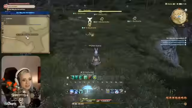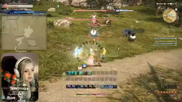 00:09:44Der Streamer beginnt seine Reise mit dem Einführungsquest und trifft auf mehrere Charaktere. Er erhält eine erste Aufgabe und erkundet die Stadt. Der Streamer erhält verschiedene Gegenstände und Ausrüstung von anderen Spielern und interagiert mit der NPC-Katze. Er beginnt mit dem Sammeln von Kräutern und trifft auf seine ersten Gegner, wie z.B. einen Goblin.