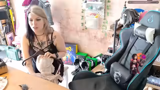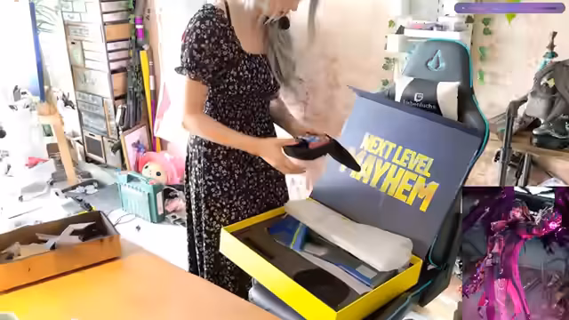 00:24:36Die Streamerin präsentiert neue Magnete, die sie für Cosplay-Projekte bestellt hat, darunter Neodym-Magnete mit kleinen Zähnen und Unterlegscheiben zur Stabilisierung. Diese sollen an der Flügelkonstruktion und dem Mantel eines Kostüms befestigt werden. Anschließend packt sie ein weiteres Materialpaket mit neuen Hexflex-Farben aus. Die alten Farben waren leer, daher hat sie die gleichen Farben und ein, zwei mehr bestellt. Sie zeigt die Hexflexfarben, Flexible Paint, eine flexible Farbe, die nicht so leicht bricht wie normale Acrylfarbe und eine klare Versiegelung (Clearcoat), um die Farbe zu versiegeln. Außerdem hat sie sich Metallic-Farben und Matten-Farben in Rosé, Schwarz, Weiß und Grau bestellt. Sie erklärt, dass sie die Farben für Borderlands und andere Projekte verwenden möchte und zeigt Primer für die Foam-Teile, die sie zuvor auf dem Balkon aufgesprüht hat. Die Streamerin erklärt, dass Foam wie ein Schwamm ist und eine Versiegelung benötigt, damit die Farbe besser hält. Sie vergleicht Foam mit Moosgummi in besserer Qualität und erklärt, dass die Grundierung wichtig ist, damit die Farbe nicht einfach einsaugt wird.