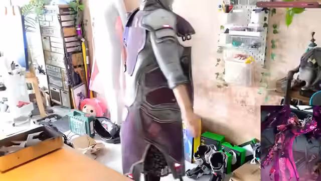 00:38:08Die Streamerin zieht den Borderlands-Mantel an, um ihn dem Chat zu präsentieren. Sie erklärt, dass der Mantel drei Taschen hat, in denen sie Kleinigkeiten und eine Powerbank verstauen kann, um die LEDs im Mantel zu betreiben. Die Streamerin erklärt, dass jeder Zentimeter des Mantels handbemalt wurde und dass das sehr aufwendig war. Sie zeigt Details wie die LEDs und die Möglichkeit, durch den Mantel zu greifen, falls etwas kaputt gehen sollte. Sie erwähnt, dass die Cam PC gesteuert ist und sie die in jeden Winkel bringen kann. Sie zeigt den Wechselkasten mit einem Akkuschrauber, den sie für die Schrauben an dem Gürtel des Wex-Cosplays brauchte. Der Gürtel wurde von einem Kumpel 3D-gedruckt. Die Streamerin verweist auf ihr Cosplay-Instagram, wo man das volle Cosplay in Aktion sehen kann. Sie erklärt, dass die Perücke zu dem Charakter komplett aus Foam besteht und aus einzelnen Teilen zusammengesetzt ist, die sie gedremelt, abgerundet und bemalt hat.