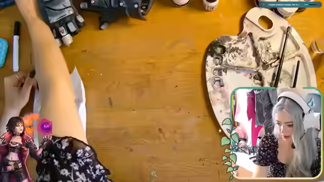02:09:40Der Fokus liegt auf der detaillierten Bemalung von Accessoires für ein Borderlands-Cosplay. Die Streamerin arbeitet intensiv mit Acrylmarkern in Schwarz und Weiß, um Schattierungen und Highlights zu erzeugen. Dabei wird erklärt, wie man die Farbe mit einem leicht angefeuchteten Pinsel verblendet, um sanfte Übergänge zu erzielen. Der Prozess wird als zeitaufwendig, aber beruhigend beschrieben.