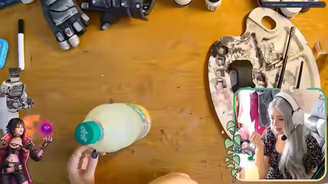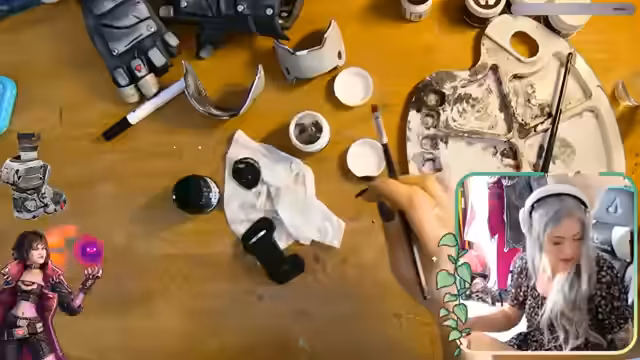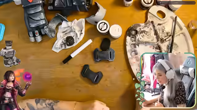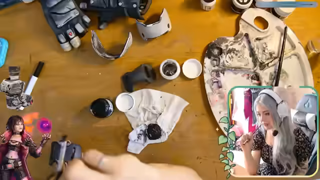 Farbenfuchs präsentiert neue Magnete und Hexflex-Farben für Cosplay-Projekte. Der Borderlands-Mantel mit LEDs und handbemalten Details wird vorgestellt. Zukünftige Projekte wie Siri aus Witcher 4 und Chai aus Solo-Leveling werden erwähnt, ebenso vergangene Aufträge für KFC und Valorant. Die Streamerin spricht über Kooperationen mit Erlinger Clothing und EMP, ihre Cosplay-Anfänge und den Wunsch nach einem Hund.