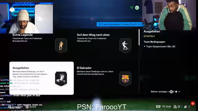 01:30:03Der Streamer erklärt einen XP-Bug im Live-Management Karrieremodus, mit dem sich die ersten 3000 XP in unter 10 Minuten farmen lassen. Dazu startet man eine Blitzstart-Karriere, simuliert bis zum Spieltag, wechselt in das Partymenü und gibt das Spiel direkt nach dem Anpfiff auf. Die restlichen XP werden durch eine Kombination aus drei Engländern, drei Italienern und einem Borussia Dortmund Spieler geholt.