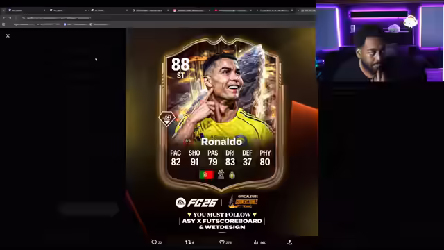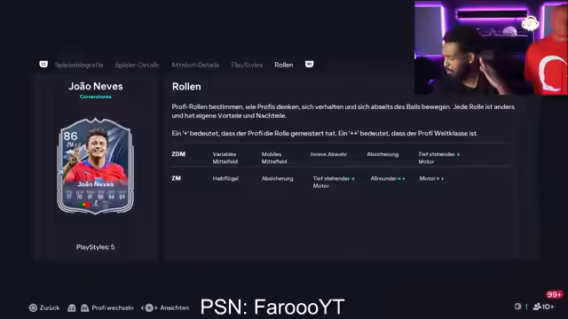03:05:24Cristiano Ronaldo wird begutachtet, aber seine Playstyles werden als enttäuschend empfunden, da ihm Technik, Raserei und Quick Step fehlen. Low Driven wird als sein bester Playstyle hervorgehoben. Trent Alexander-Arnold wird als potenziell großartige Karte für das zentrale defensive Mittelfeld (ZDM) angesehen, aber er ist auf der rechten Seite festgelegt. Der Streamer hätte für eine ZDM-Version viel Geld bezahlt. Er lädt Zuschauer ein, ihn beim Pack Opening einzuladen. Abschließend wird Lidl als Ruhepol mit entscheidendem Pass hervorgehoben. Der Streamer analysiert die neuen Karten im Spiel und gibt seine Einschätzungen zu deren Nützlichkeit und potenziellen Playstyles ab. Dabei werden sowohl positive als auch negative Aspekte der jeweiligen Karten beleuchtet.