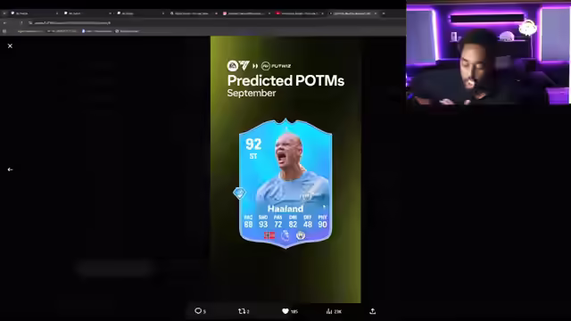 00:11:45Es wird bestätigt, dass Kilian Mbappé heute als POTM (Player of the Month) erscheint. Der Streamer äußert seine Überraschung darüber, dass Mbappé der erste POTM des Jahres ist. Es wird spekuliert, ob Mbappé eine 92er-Karte bekommt und wie viel diese kosten wird. Es wird diskutiert, ob eine weniger starke Karte für Gelegenheitsspieler besser wäre, da sonst jeder mit Mbappé spielen würde. Der Streamer schätzt, dass eine solche Karte etwa 1,1 bis 1,2 Millionen Coins kosten würde. Er kündigt an, 1000 Euro aufzuladen. Die Weekend League endet am Montag um 9 Uhr morgens. Es wird auch über Claudio Pina gesprochen, vor deren POTM-Karte der Streamer Angst hat, da sie sehr wahrscheinlich auch eine Cornerstone-Karte bekommt. Es wird spekuliert, dass sie maximal 300k bis 350k kosten wird. Der Streamer erwähnt, dass alle Frauen im Angriff im Spiel unglaublich gut sind. Zudem wird Harry Kane als wahrscheinlicher POTM in der Bundesliga genannt. Haaland POTM wird ebenfalls erwartet. Der Streamer fragt die Zuschauer, ob er Mbappé machen soll, egal welche Stats er hat, um eine Meinung für die Community abzugeben.