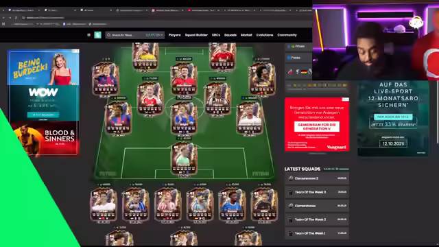 03:38:34Der Streamer zählt die Anzahl der Shop-Packs, die er öffnen wird, um eine Vorhersage zu starten. Er kündigt eine Wette auf Twitch an, bei der die Zuschauer Kanalpunkte einsetzen können. Die Wette dreht sich darum, ob aus allen Promopacks mindestens zwei Cornerstone-Spieler gezogen werden. Der Streamer holt seinen Ladekar und fügt Stiller in sein Team ein, wobei er überlegt, ob er Shadow als Chemistry Style geben soll. Er behält Rinders vorerst, da er erwartet, dass dieser teurer wird. Die Wettenquote wird als sehr 50/50 im Chat eingeschätzt. Der Streamer bedankt sich bei neuen Followern und beginnt mit dem Öffnen von Premium-Goldspieler-Packs. Er erwähnt, dass er auch Kölner und Aslani in seinem Kick-Bass-Team hat und hofft auf gute Leistungen. Es folgt eine Diskussion über den besten Torwart im Spiel, wobei verschiedene Meinungen ausgetauscht werden. Der Streamer überlegt, sich einen teuren Torwart wie Cassias oder Kahn zu holen, entscheidet sich aber vorerst dagegen.