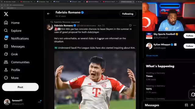 00:39:02Ein mögliches Transfer-Thema ist Nico Williams, der angeblich eine Ausstiegsklausel von 60 Millionen Euro hat. Bayern München, nachdem sie Sané abgegeben haben, benötigen einen offensiven Spieler, insbesondere einen Flügelspieler. Der Streamer bewertet einen möglichen Wechsel von Williams zu Bayern als sehr positiv und betrachtet 60 Millionen als gerechtfertigten Preis für das Potenzial des jungen Spielers.