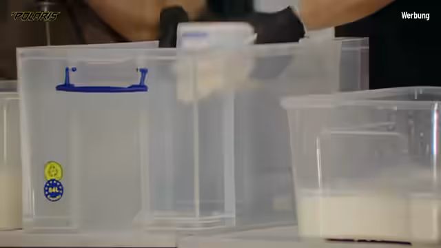 02:39:29Die Zubereitung des Tiramisu in der Schubkarre entwickelt sich zu einem chaotischen und interaktiven Spektakel. Verschiedene Stationen werden eingerichtet: eine Schlagsahne-Station, eine Löffelbiskuit-Station mit Kaffeetränkung und eine Anrichtestation. Unter Verwendung von über 10 Liter Schlagsahne, 30 Kilo Mascarpone, 8 Kilo Löffelbiskuits und enormen Mengen Zucker wird das Tiramisu in Handarbeit zubereitet. Bei der Herstellung entstehen spontane Probleme wie falsche Konsistenzen, fehlender echter Kaffee und umständliche Arbeitsweisen, die humorvoll kommentiert werden. Das Publikum wird aktiv einbezogen: Zuschauer helfen beim Rühren, Schichten und sogar beim Ablecken der Küchenutensilien. Die Szene wird begleitet von Applaus, Kinnerschaft und einem Gefühl unkontrollierter Gästeteilnahme, während die Schubkarre langsam gefüllt wird.