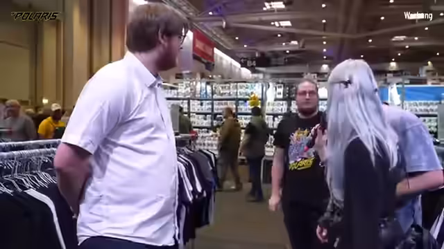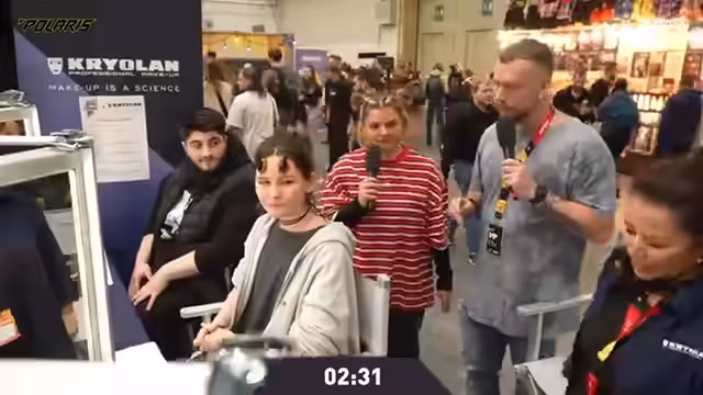 00:14:57Um 12:30 Uhr beginnt die offizielle Eröffnung auf der Mainstage, moderiert von Fischkopp. Direkt im Anschluss startet die erste Ausgabe der 'Iron Polaris', einer/gameshow-artigen Show, bei der Gäste in einem 1-Gegen-1-Wettkampf in Minispielen gegeneinander antreten. Für diesen Teil sucht das Team noch aktiv Teilnehmer unter den Messebesuchern, die sich noch melden können. Danach folgt der vertraute Programmpunkt 'Copy & Taste'. Der erste Streaming-Tag wird als sehr stark eingestuft, auch wenn ein gemeinsames Frühstück aus Zeitmangel noch aussteht.