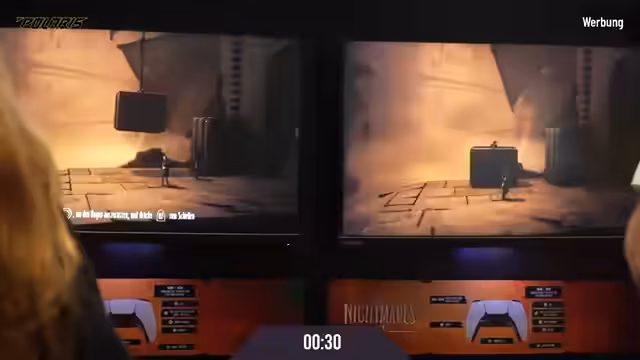 02:11:33In einem humorvollen Wettkampf spielen zwei Teilnehmer gemeinsam 'Little Nightmares', ein atmosphärisches Side-Scroller-Spiel mit Rätselelementen. Die Regel ist einfach: Wer zuerst stirbt, hat verloren. Beide Spieler sind unerfahren im Spiel, tauchen aber schnell in die düstere Welt ein und müssen Blöcke bewegen, um Hindernisse zu überwinden. Während der Gameplay wird die fesselnde Atmosphäre des Spiels gelobt, das komplett in seinen Bann zieht und selbst nach Jahren noch beeindruckt. Die Runde wird mit einer Mischung aus Konzentration und humorvollen Bemerkungen begleitet, während die Zuschauer den Fortschritt der Spieler verfolgen.