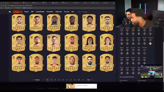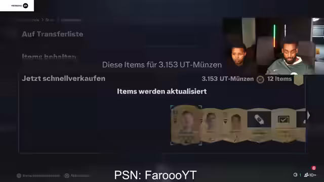 01:57:39Die erste Evolution wird geskippt, da sie anders aussieht und nur geringe Verbesserungen bringt. Es wird überlegt, die Evo für zukünftig krassere Karten zu behalten und die Torwart-Evo wird erwähnt. Es folgt eine Diskussion über Playstyles und die Suche nach Pogba für 2K. Der Streamer spricht über untradable Items und den Mangel an Wissen über Trading. Der Chat gibt Tipps zu Spielern, die im Wert steigen könnten, darunter Namen wie Adimi und Ektiki. Reinders wird als potenziell günstig für 70k angesehen, während andere Spieler wie Luis Diaz und Davison Sanchez diskutiert werden. Es wird überlegt, welche Spieler gute Starter-Optionen sind, darunter Namen wie Koulierakis und Murillo. Jeremy Doku und andere Spieler werden ebenfalls in Betracht gezogen. Die Diskussion dreht sich um die besten 10er für Low Budget und die Playstyles von Messi und Ronaldo. Es wird festgestellt, dass es bestimmte Spieler wie Cristiano Ronaldo und Leao nicht auf dem Markt gibt. Nico Williams wird für 300.000 Coins erwähnt, während Lacroix für 8000 Coins schockiert. Isaac kostet 500.000 Coins. Son wird für 17k als guter Deal mit Finesse und Sturm-Fähigkeit angesehen. Zart wird als potenzieller Anzeigefehler mit 5-5 Skills betrachtet. Desiree Duet und Paris-Spieler werden diskutiert. Quader hat Rivella bekommen und kostet 700k. Es werden Spieler wie Pogba und Rafinha erwähnt, die aus Goldpacks gezogen wurden. Abschließend werden verschiedene Spieler auf einer Liste mit Preisen genannt, darunter Ryan, Son, Polizic, Nico Williams, Openda, Pogba und Kieser.