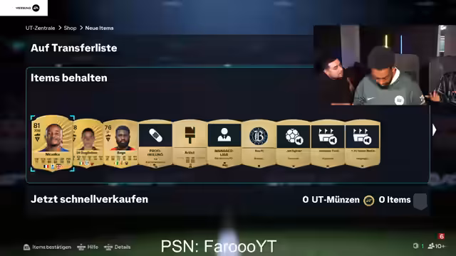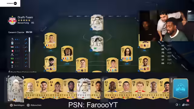 03:57:33Es werden Walkouts gezogen, darunter Irene Paredes. Es wird festgestellt, dass Walkouts oft Frauen sind. Es wird überlegt, ob man Fundeven kaufen soll. Es werden Openda und David Sanchez gezogen. Es wird sich unterhalten, was im Chat passiert. Es wird sich gefragt, wie lange man überhaupt spielen kann. Es wird sich beschwert, dass man die Info, dass man auch spielen kann, erst so spät bekommen hat. Es wird sich gefragt, ob man die Packs von FC 25 in FC 26 holen kann. Es wird festgestellt, dass Watkins cool ist. Es wird sich über Fokan lustig gemacht, der die besten Football-Leute der Welt hat. Es wird sich gefragt, wie es bei Chelsea läuft. Es wird sich gefragt, ob Romero gezogen wurde. Es wird sich erkundigt, ob David Zusatz gezogen wurde. Es wird sich erkundigt, was der Korn ist. Es wird festgestellt, dass Osman verletzt ist. Es wird sich über das Spiel Frankfurt gegen Galer unterhalten. Es wird festgestellt, dass Darwin Nunes gut läuft. Es wird sich über Tonali unterhalten. Es wird sich gefragt, wer zuerst eine Icon zieht.