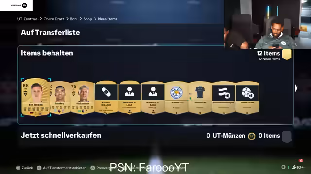 01:21:06Es wird die Frage aufgeworfen, warum Vorbesteller den Pre-Order-Bonus vor dem eigentlichen Release erhalten. Gamer Blosser hat bereits 3 Millionen Coins. Es wird überlegt, wie viel man aufladen kann, ohne eine Sperre zu riskieren. Es werden Spieler auf dem Transfermarkt gesucht, die kürzlich den Verein gewechselt haben. Donnarumma bei Paris, Openda bei Juve, Xavi Simmons bei Leipzig und Luis Diaz bei Liverpool sollen gekauft werden. Die Web App soll erst nach 0 Uhr gestartet und dann aufgeladen werden. Es wird versucht, TikToks von FC26 zu liken. Die Pre-Order-Icons sind ab dem 29. November in den Packs für alle verfügbar. Die Web App ist angeblich draußen. Es wird versucht, sich bei der Web App anzumelden. Es gibt Probleme beim Einloggen und es wird ein falscher FC-Start angezeigt. Die Premier League wird als Liga für das Starter-Team gewählt. Es werden Packs geöffnet, aber es gibt Probleme beim Öffnen der Packs. Es wird vermutet, dass es ein Bug ist, der einen nach jedem geöffneten Pack neu einloggen lässt. Es wird überlegt, ob man zuerst keine Packs öffnen soll. Es wird festgestellt, dass die Web App sehr verbuggt ist. Es wird gehofft, MAP zu ziehen. Es wird gefragt, wer alles in die Web App reinkommt. Es wird festgestellt, dass der Transfermarkt gesperrt ist.