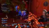 00:51:37Während des Spiels stößt die Gruppe auf ein Welt-Event und kämpft gegen starke Gegner. Der Streamer teilt seinen gefundenen Legendary-Loot mit den Spielern, indem er ihnen Waffen wirft, die er nicht selbst benötigt. Es kommt zu humorvollen Missverständnissen bei der Vergabe von Ausrüstung und der Streamer gibt Tipps zur Verwaltung des vollen Rucksacks, indem die Gruppe kurz zur Basis portet, um überflüssige Waffen zu verkaufen.