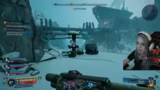 00:44:26Nach einer kurzen Vorbereitung und einerfinalen Team-Besprechung starten der Streamer und seine Mitspieler in die Hauptquest von Borderlands. Sie befinden sich bereits auf einem hohen Level und wollen die Mission bei der Mondbruchstätte fortsetzen. Die Gruppe navigiert durch die Spielwelt und stellt fest, dass alle Spieler den gleichen Fortschritt in der Story haben.