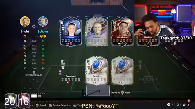 02:22:37Der Streamer öffnet verschiedene Packs im Team of the Season Modus. Nach einigen erfolgreichen Pack Öffnungen, in denen er verschiedene TOTS Spieler zieht, zeigt er sich begeistert. Er erwähnt Spieler wie Mohamed Ihataran und Van Dijk. Der Streamer scheint positiv überrascht von den Servern, die gut laufen, und von den Karten, die er zieht. Er kommentiert auch die Animationen und das Design der TOTS Karten, das ihm gefällt.