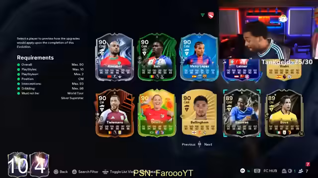 01:14:02Der Streamer diskutiert mit dem Chat über seine aktuelle Teamzusammenstellung, insbesondere über Spieler wie Kobe Maino und Taha Ali. Er erklärt, warum er bestimmte Spieler in seiner Formation hat und welche Spieler er gerne upgraden würde. Der Fokus liegt darauf, Spieler mit bestimmten Playstyles wie Evo und Dribbler zu integrieren. Der Streamer zeigt sich unzufrieden mit manchen Spielerstats, besonders bei Taha Ali, der derzeit nicht in eine Evo aufsteigen kann, obwohl er gut spielt.
