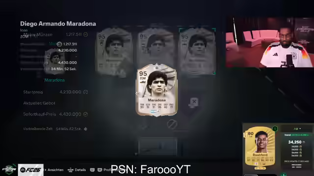 04:56:19Der Streamer kündigt Eikelpacks für 19 Uhr an und fragt, was das normale Eikel ist. Es folgt ein Gespräch über die Kosten verschiedener Spieler im Spiel, wobei R9 nach 10 Tagen 14 Millionen Coins kostete und Pelé 6 Millionen. Der aktuelle Preis von Pelé wird mit 6,5 Millionen angegeben. Es werden Preisvergleiche verschiedener Spieler wie Garinscher und Jairzinho angestellt. Die Tradingliste wird thematisiert, wobei Gaucho nach 10 Tagen 5,5 Millionen kostete. Es werden weitere Spieler wie Veera, Maidini und Rapparie genannt und ihre Preise verglichen. Zidane und Viera werden ebenfalls erwähnt, sowie Mia Hamm, die nach 10 Tagen 7 Millionen kostete. Der Streamer spricht über einen Doppel-Walkout und die Wahrscheinlichkeit, diesen zu bekommen. Er äußert die Vermutung, dass die Preise dieses Jahr teurer werden und vergleicht die Kosten von Maradona im letzten Jahr mit den aktuellen Preisen.
