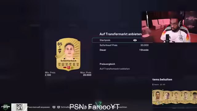 06:19:31Ein Vorfall, bei dem jemand zweimal Sega zieht, wird als extrem unglücklich und beispiellos früh im Spiel bezeichnet. Es wird Mitleid mit der Person ausgedrückt, und die Community fordert, dass der Clip auf Twitter geteilt wird. Der Streamer erwähnt, dass seine eigenen Coins weg sind und er bereits Einkäufe getätigt hat. Die Zuschauer werden ermutigt, jetzt einzukaufen, da die Preise bald steigen werden. Es wird überlegt, welche Shoppacks geöffnet werden sollen, und der Streamer äußert die Absicht, alle verfügbaren zu öffnen. Es wird diskutiert, ob man mit 1 oder 2 Millionen Coins ein Team bauen soll, aber der Streamer würde lieber investieren. Es wird überlegt, ob Lorente-Inform gekauft werden soll, und Kilini wird als Top-Spieler erwähnt. Die fallenden und wieder steigenden Preise der Spieler werden kommentiert.