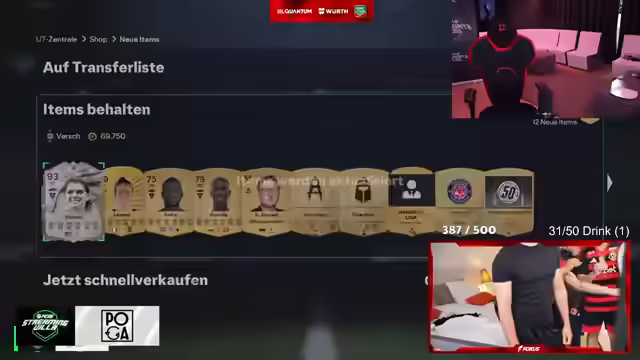 08:18:13Es herrscht Frustration aufgrund des anhaltenden Pechs beim Öffnen der Packs. Der Streamer und andere Teilnehmer ziehen trotz des Einsatzes großer Mengen an virtuellem Geld kaum wertvolle Spieler. Es wird mehrfach betont, dass keine Walkouts (hochwertige Spieler) gezogen werden, was zu Enttäuschung und Ärger führt. Es wird überlegt, wer der aktuelle Verlierer ist und wer die Wachsstreifen-Strafe erhalten wird. Trotz der schlechten Ergebnisse wird weitergemacht und gehofft, dass sich das Glück noch wendet. Der Streamer äußert den Wunsch nach einem guten Stürmer, um das Pech auszugleichen. Die Stimmung ist angespannt und von Frustration geprägt, da die erhofften Erfolge ausbleiben.