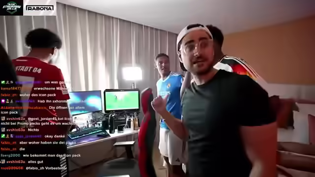 07:05:23Es wird über die Promopacks im Shop gesprochen und vereinbart, diese gemeinsam zu öffnen, sobald Willi sein Spiel beendet hat. Es wird überlegt, ob man Scorpeds grinden muss. Es wird über Willis Spiel gesprochen und eine Watchparty von seinem Elfmeterschießen gemacht. Es wird gehofft, dass Willis Gegner gewinnt. Es wird über die Stimmung im Stadion diskutiert und festgestellt, dass die Stimmung bei den Gala-Ultras sehr laut war. Es wird eine Challenge angekündigt, bei der der schlechteste eine Wachsstreifenbestrafung erhält. Es wird überlegt, ob man die Cam switchen soll und es wird festgestellt, dass die IRL-Cam funktioniert. Es wird überlegt, was man machen würde, wenn man in der Weekend League hinten liegt. Es wird ein Plan für die Pack Openings gemacht und vereinbart, dass jeder ein Icon Pack aufmacht. Es wird überlegt, wer die Icons am häufigsten zieht und was das Beste ist. Es wird überlegt, ob man die Reactionen der anderen sehen soll. Es wird festgestellt, dass Sissi gezogen wurde und dass ihre richtige Karte besser wird als die Main-Karte. Es wird festgestellt, dass der Account von Hamid gecheatet ist, da er jedes Jahr zum Start Mbappé zieht. Es wird überlegt, ob Toni stark ist und ob man Henri oder Libra ziehen soll. Es wird festgestellt, dass die Points für jemanden aufgeladen werden und dass das peinlich ist. Es wird festgestellt, dass alle schon so viele Coins haben und dass das schlimm ist. Es wird festgestellt, dass Toni scheiße ist und dass man Toni groß ziehen wollte. Es wird festgestellt, dass Faro das geilste Zimmer hat und dass es dort sehr kalt ist.