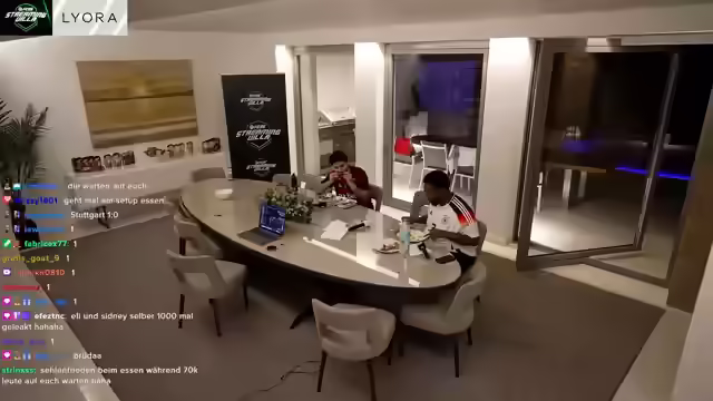 08:45:52Es wird eine Geschichte von einem Vorfall erzählt, bei dem ein Mitspieler bei einer Niederlage im Spiel seinen Kopf gegen den Tisch schlug. Es wird der Beginn eines Draft-Spiels angekündigt. Es wird über die Qualität des Spiels diskutiert und festgestellt, dass es fast perfekt sei. Es wird über die Schwierigkeit des Spiels geklagt, da man trotz guter Chancen keine Tore erzielt. Es wird über verschiedene Taktiken diskutiert, um im Spiel erfolgreicher zu sein. Außerdem wird sich über Black Screens beschwert, die das Spielerlebnis trüben.