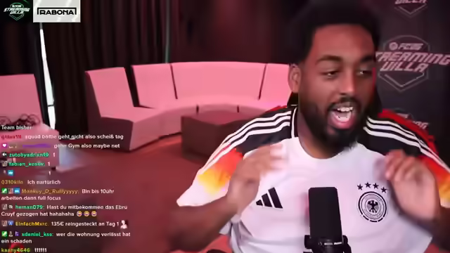 02:15:28Es wird entschieden, dass das Stechen bis 16 Uhr geht, bis Eli sein R9 abläuft. Es wird überlegt, ob ein FIFA-Match oder ein Schwanzvergleich als Stechen dienen soll. Hamid muss nicht ins Pool. Der Streamer darf Eli ins Pool schmeißen. Es wird überlegt, das Wappen zu wechseln. Es wird über Arbeitszeitbetrug gesprochen. Es wird überlegt, ob man während des Drafts Packs öffnen darf. Der Streamer kauft Andres Iniesta. Es wird über Essen gesprochen und Chicken bestellt. Es wird über Lieblingsessen diskutiert. Es wird eine mobile Cam für 16 Uhr bestellt. Der Streamer zieht weiterhin nichts Gutes. Es wird über ein erneutes Pack-Opening gegeneinander diskutiert. Es wird über Kommerzvereine gesprochen. Der Streamer sagt, dass er immer verliert. Es wird über Draftking gesprochen. Es wird diskutiert, wer besser ist: Rui Costa oder Florian Wirtz. Der Streamer hat letztes Jahr zwei Spiele gegen Content Creator gewonnen. Es wird darüber gesprochen, dass der Streamer seit 40 Minuten Packs öffnet und keinen Walkout gesehen hat. Es wird geschätzt, dass die Teilnehmer zusammen 1.400 Euro ausgegeben haben, ohne etwas Wertvolles zu ziehen.