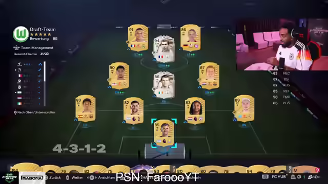 11:17:39Es wird über Draft-Strategien und die Spielweise in FIFA diskutiert. Der Streamer gibt an, kein Team zu haben, aber drei Millionen Coins zu besitzen. Es wird über die Anzahl der Coins und den Wert der Karten im eigenen Besitz gesprochen, wobei der Streamer bedauert, keine Karte zu haben, die 100k wert ist. Es folgt eine kurze Diskussion über Walkouts und das Verhalten von Hamid, der Eldos den Controller wegnimmt. Der Streamer scherzt darüber, dass jemand bei ihm einziehen wird, wenn er bestimmte Spieler zieht. Es wird über das Ziehen von schlechten Karten und den Wunsch nach besseren Walkouts gesprochen. Der Streamer und seine Kollegen haben sich Icons für später aufgehoben. Es wird überlegt, ob man Iniesta hätte behalten sollen.