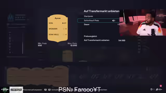 00:06:52Es werden Kartenwerte diskutiert, darunter Dybala, Kilian und Guardiol. Der Streamer überlegt, Kilian zu verkaufen, um Gewinn zu machen. Er zeigt sein aktuelles Team und betont, dass er heute safe eine Icon ziehen wird. Es wird überlegt, ob Inaki verkauft werden soll. Der Streamer bemerkt, dass der Markt krank am steigen ist. Er bedankt sich für einen Sub und fügt den Twitch-Aktivitätsfeed hinzu. Es wird die beste Neuerung gelobt, dass man direkt mit dem rechten Stick sehen kann, wie viel die Karten wert sind. Der Streamer überlegt, Tio zu kaufen, da er in zwei Wochen explodieren wird. Es wird die Erfahrung mit den angezeigten Preisen erfragt. Der Streamer erzählt, dass er bei einer riesigen Produktion dabei ist und sieht, was im Hintergrund gemacht wird.