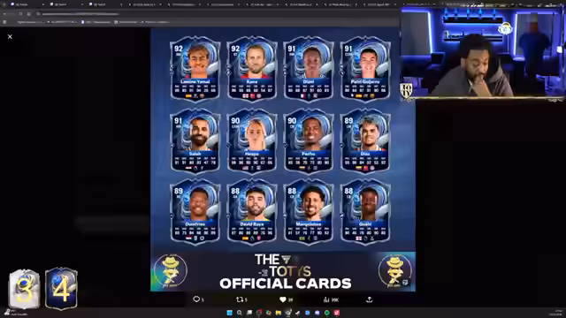 00:20:53Nach einer Präsentation der offiziellen Karten der neuen TOTYs und Heroes zeigt sich der Streamer sehr enttäuscht. Insbesondere Francesco Tottis SPC-Karte wird scharf kritisiert, da sie laut Streamer "Müll" sei und einen unpassenden Body-Type habe. Auch die Karten von Lamine Yamal, Salah und anderen werden als enttäuschend eingestuft. Er fühlt sich von EA "gekickt" und wird die Karten wahrscheinlich nicht machen.