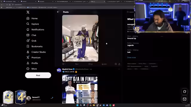 01:35:50Der Streamer wechselt zu persönlichen Themen wie dem Rezi-Konzert und seinem eigenen Aufenthaltsort. Er spricht darüber, wie sein aktueller Tag verlaufen ist und klagt über einen "Kack-Tag". Gleichzeitig wirbt er indirekt für sich selbst, indem er seine langjährige Präsenz im FIFA-Content-Bereich erwähnt und das Gefühl vermittelt, "vergessen" zu werden.