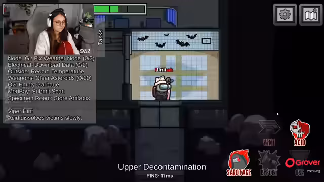 04:22:25Das Spiel beginnt und der Streamer übernimmt die Rolle des „Detectives“. Es kommt zu ersten Todesfällen und intensiven Diskussionen in den Meetings. Die Spieler suchen nach Alibis und versuchen, den Zeitpunkt der Todesfälle zu rekonstruieren. Die neu eingeführte „Viper“-Rolle, die Leichen schnell zersetzt, erschwert die Ermittlungen und sorgt für zusätzliche Verwirrung.