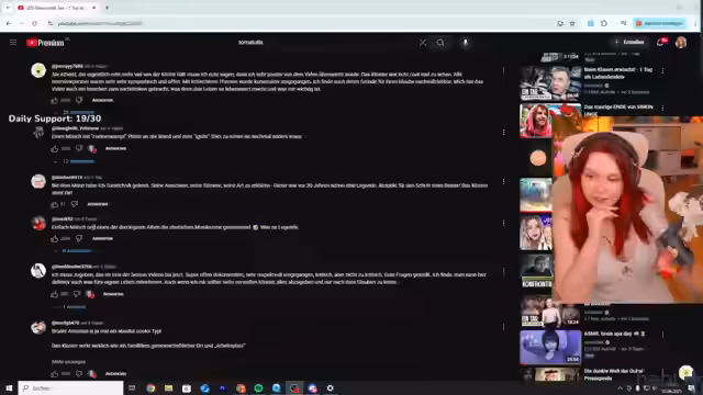 04:18:58Der Streamer interagiert mit der Community über die nächsten Videointerviews und diskutiert verschiedene Optionen, darunter ein Video von Marvin Wildhager über das Thema Kinder im Rotlicht. Es werden auch persönliche YouTube-Inhalte wie ASMR-Videos angesprochen. Der Streamer zeigt Aufregung über das Bernd-das-Brot-Video und die Terra-X-Serie. Er erwähnt die Dokomi-Messe und plant, dort mit der Community zusammenzukommen. Durch eine Umfrage entscheiden sich die Zuschauer für das Anschauen des Bernd-das-Brot-Videos, was in eine Nostalgie-Reise in die Kindheit mit der KIKA-Serie führt.