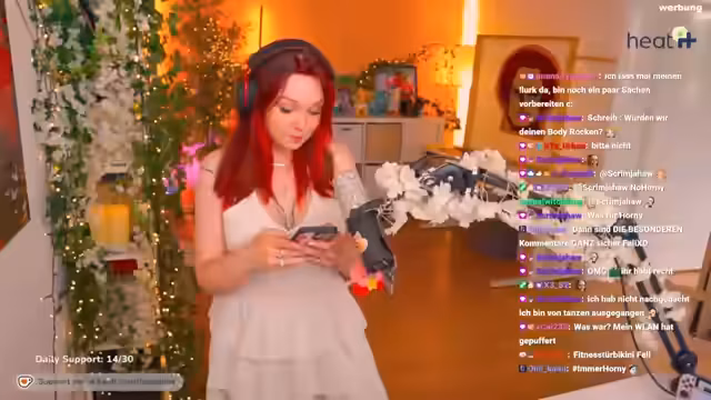01:06:57Der Streamer spricht über seine täglichen Instagram-Posts und die Schwierigkeiten, eine gute Caption für ein neues Tanz-Reel zu finden. Es geht um den Tanz zu dem Song 'Rock that body' und die Idee, die Zuschauer aufzufordern, ihre Tanz-Skills zu bewerten. Der Streamer diskutiert mögliche Hashtags wie #Egirl, #Gamergirl und #FrankfurtGirl. Es werden auch humorvolle Vorschläge aus dem Chat besprochen, wie 'Wir werden deinen Body rocken', die aber als zu freizügig zurückgewiesen werden. Der Streamer plant, den Post um 12 Uhr hochzuladen und bittet um Hilfe bei der Hashtag-Auswahl.