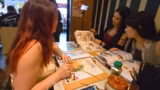 03:33:33Die Streamer erreichen das Japanische Viertel in Düsseldorf und suchen nach einem Tisch. Sie werden von Helen begleitet, die für ihr auffälliges Make-up Komplimente erhält. Helen spricht über ihre Erfahrungen mit Mikronadelung und teilt mit, dass sie aufgrund einer Hautbehandlung für zwei Tage kein Make-up auftragen darf. Während sie auf einen Tisch warten, äußern sie Hunger und Durst, wobei sie auf die geplante japanische Mahlzeit gespannt sind und sich auf den Rain einstellen.