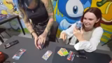 01:12:41Nach mehreren erfolgreichen Pokémon-Eröffnungen wagen sich die Streamer an die Magic-Karten. Nach einem tragischen, leeren Pack bei einem Magic-Öffnung für einen User namens Hanso, der nur Basis-Energie enthält, wird die Stimmung gedämpft. Daraufhin wird der Fokus auf ein Pokémon-Prismatics Pack verlagert, das durch den Würfel des Chats und die günstige Karte Polypora einen versöhnlichen Abschluss findet.