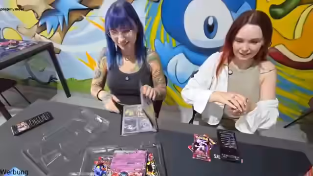 03:10:42Für einen Follower, der eine Mystery Box gesponsert hat, werden die enthaltenen Booster geöffnet. Der Streamer, der sich von Pech verfolgt fühlt, öffnet nacheinander verschiedene Booster-Formate, darunter Tin, Blister und Trainer Packs. Die Erträge sind jedoch enttäuschend und bestehen hauptsächlich aus häufigen Karten. Trotzdem ist der Streamer dankbar für das Sponsoring und zeigt auch ein mitgeschenktes Federmäppchen.