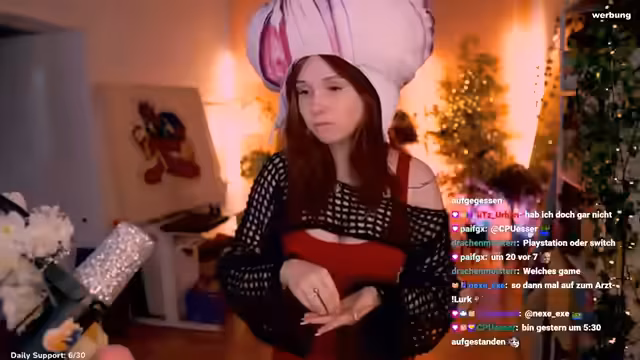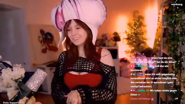 05:24:40Feli erkundigt sich im Chat nach Interesse an einem Community-Tag für Spiele wie League of Legends, Minecraft oder Mario Kart. Sie diskutiert mögliche Termine und Varianten und überlegt, ob sie einen Leak-Tag oder einen Farming Simulator Tag einfügen könnte. Sie bemerkt, dass viele League of Legends spielen, aber auch Interesse an anderen Spielen besteht. Feli plant, nächsten Wochenende verschiedene Spiele mit der Community zu spielen, je nach Verfügbarkeit der Zuschauer.