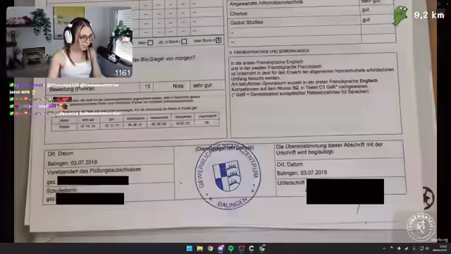 02:51:46Der Stream beginnt mit der intensiven Diskussion der Noten aus diversen Zeugnissen. Fokus liegt dabei auf der Bewertung von Leistungen, wobei insbesondere die Anzahl der Einsen und die dazugehörigen Laufmeter im Mittelpunkt stehen. Streamer vergleicht Noten aus verschiedenen Schul- und Uni-Phasen und diskutiert die Validität und Authentität der eingeschickten Dokumente. Die Noten dienen als Grundlage für die Berechnung der Laufdistanz, wobei jede Note 1 mit 200 Metern Laufleistung belohnt wird.