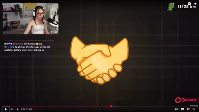 00:12:49Der Streamer erwähnt ein neues YouTube-Video, das von Kiro für ihn geschnitten wurde, und kündigt an, für zukünftige Videos wie die Zeugnis-Reaktion Aufnahmen parallel zu machen. Er informiert über den Erfolg eines älteren Clips von der KrönchenCon, der plötzlich an Popularität gewonnen hat, und beantwortet Fragen zur verbleibenden Laufstrecke und zu Craft Attack.