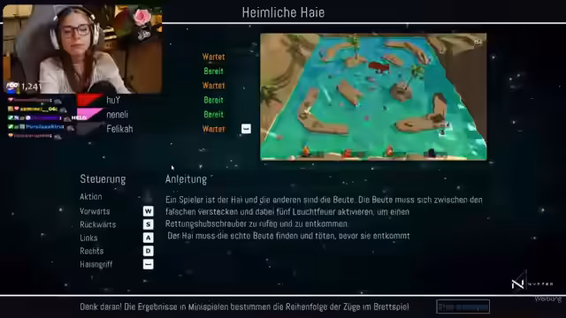 00:10:14Die Pummel-Party-Runden werden von der Community als chaotisch und überfordernd empfunden. Besonders ein Spiel mit Lasern und komplizierten Mechaniken führt zu massiver Frustration. Der Streamer gibt zu, nicht mehr in der Lage zu sein, gleichzeitig zu lesen und zu denken. Neben dem Gameplay wird über persönliche Themen wie Anime, Lieblingsessen und ein gemeinsames geplantes Event in Berlin gesprochen.