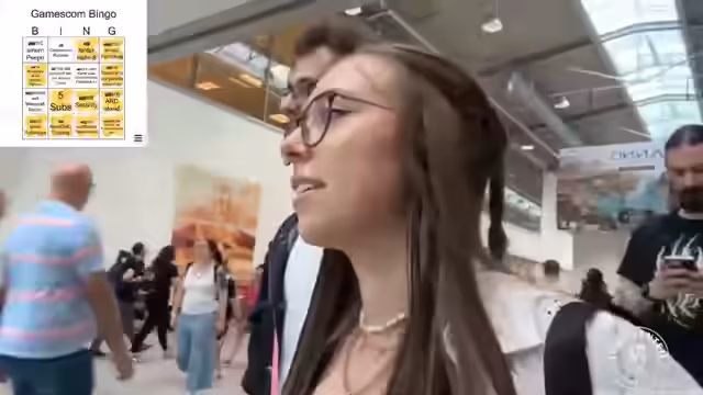 01:25:38Die Streamer nehmen an einer Bingo-Challenge teil und müssen sich an verschiedene Treffpunkte auf der Messe bewegen. Sie planen, in Halle 10.2 zusammenzutreffen, müssen jedoch feststellen, dass die Menschenmassen die Navigation erschweren. Dabei kommt es zu Verwirrungen über Treffpunkte und die genaue Route, die sie einschlagen sollen.