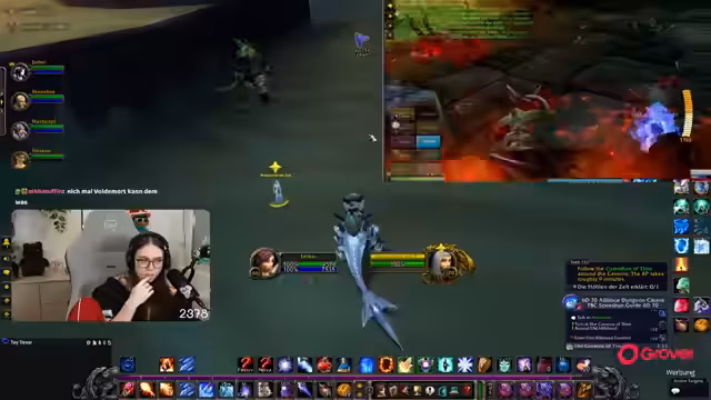 07:28:38Ein absoluter WoW-Neuling wird in den Raid-Kader aufgenommen. Er erhält eine detaillierte Einführung in den anstehenden Kampf, insbesondere in seine Aufgaben. So muss er ab Portal 13 ein Chronosignal setzen, einen Drufen beschwören, der im Kampf hilft. Er wird darauf hingewiesen, Mana zu managen und nur zwischen den Portalen zu trinken, während Cooldowns für die Bosse aufgespart werden sollen.