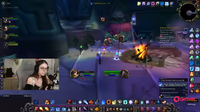 00:08:28Die Streamerin spricht über den gestrigen Grinding-Verlauf in The Burning Crusade, der sehr lange gedauert hat und erst kurz vor 4 Uhr morgens endete. Die Gruppe hat sich im Level weiterentwickelt und ist im Gebiet Zangarmarschen angelangt, nachdem sie die Höllenfeuerhalbinsel und die Ödlandzähne abgeschlossen hat. Als nächstes steht die Mana-Gruft für den Ruf an, wofür eine Gruppe benötigt wird. Der Fokus liegt darauf, den Ruf für das nächste Gebiet zu farmen, bevor man mit weiteren Quests fortsetzt.