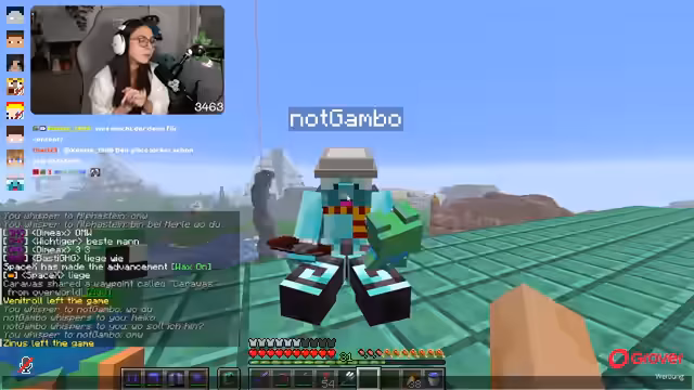 04:49:04Die Streamerin bemerkt, dass Basti etwas oben baut und fragt nach seinem Standort, um sich in Richtung Mesa zu bewegen. Es herrscht eine gewisse Hektik, da Heikos Geburtstag in nur 18 Minuten beginnt. Währenddessen versucht die Streamerin, Trapdoors und Schere zu besorgen, um beim Bau zu helfen, wird aber versehentlich von einem anderen Spieler geschlagen. Es kommt zu Verwirrungen bezüglich der Treffpunkte und Waypoints, da Marcel wiederholt angibt, bei der Base der Streamerin zu sein, obwohl er zu einem gesendeten Waypoint fliegen sollte. Die Streamerin äußert Frustration über die Kommunikationsprobleme und den Zeitdruck, da noch Inhalte für ein Geburtstagsbuch kopiert werden müssen.